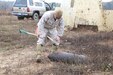 October 30, 2013 — “Digging,” yelled Gunnery Sgt. Gage CoDuto, Explosive Ordnance Disposal technician, from a water-eroded crater on Range 7, aboard Marine Corps Base Quantico on Oct. 30, 2013. CoDuto was one of 11 Marines participating in a range sweep, an event where explosive experts occupy a target range and look for unexploded ordnances. With his exclamation, MORE